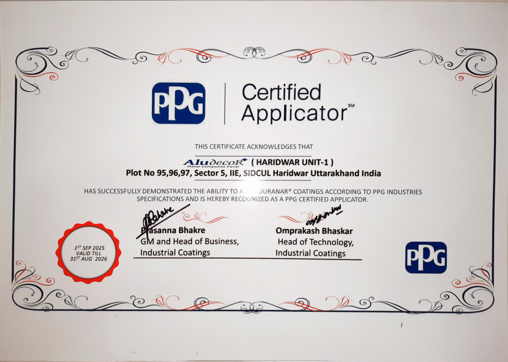 Every certification and technical data sheet represents a layer of verified information behind Aludecor’s ACPs. These documents provide detailed insights into material composition, performance parameters, and compliance with recognised national and international standards. Together, they help translate testing into clarity allowing architects, consultants, fabricators, and homeowners to make informed decisions with confidence.